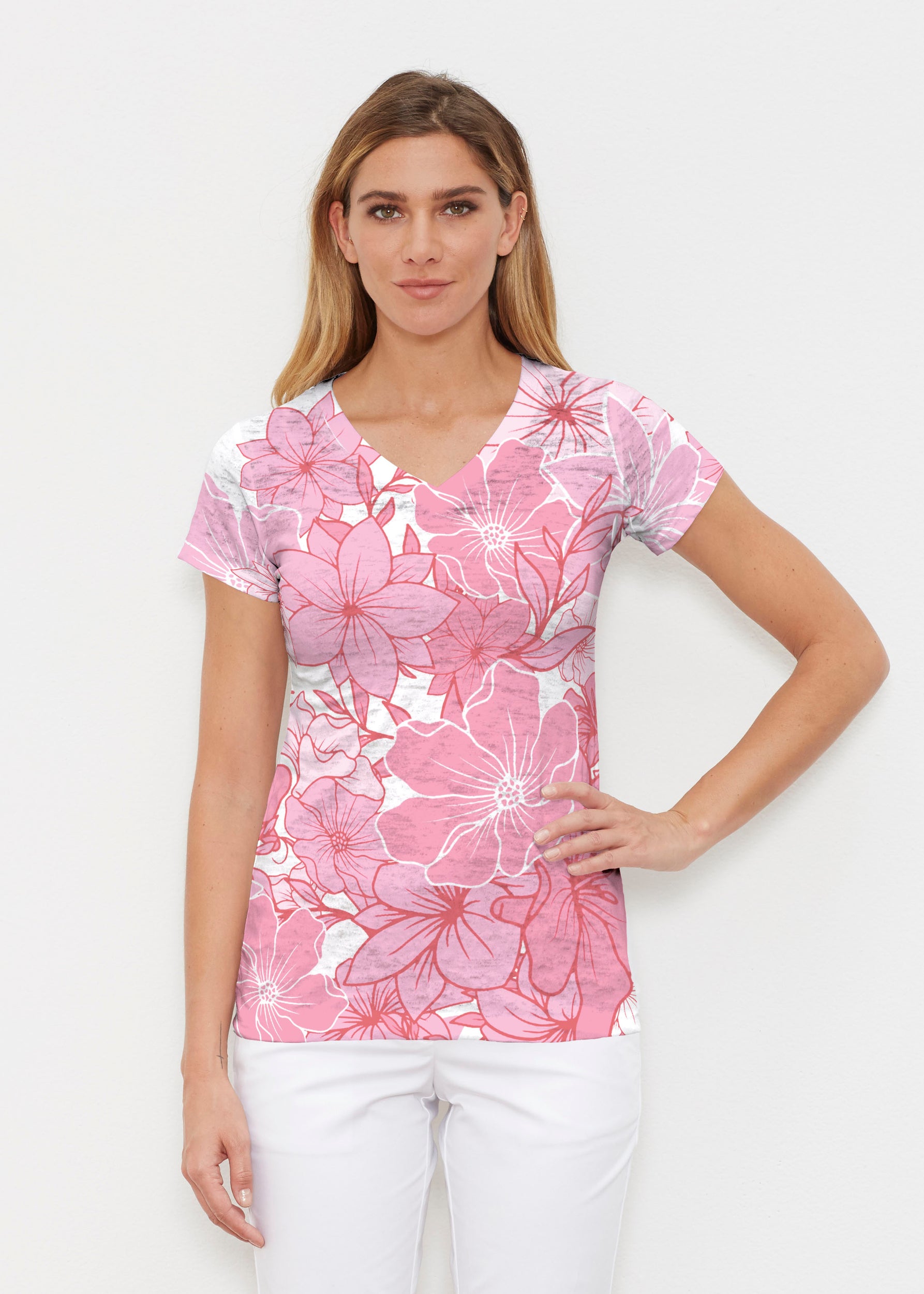 Polly Pink (5268) ~ Signature Cap Sleeve V-Neck Shirt