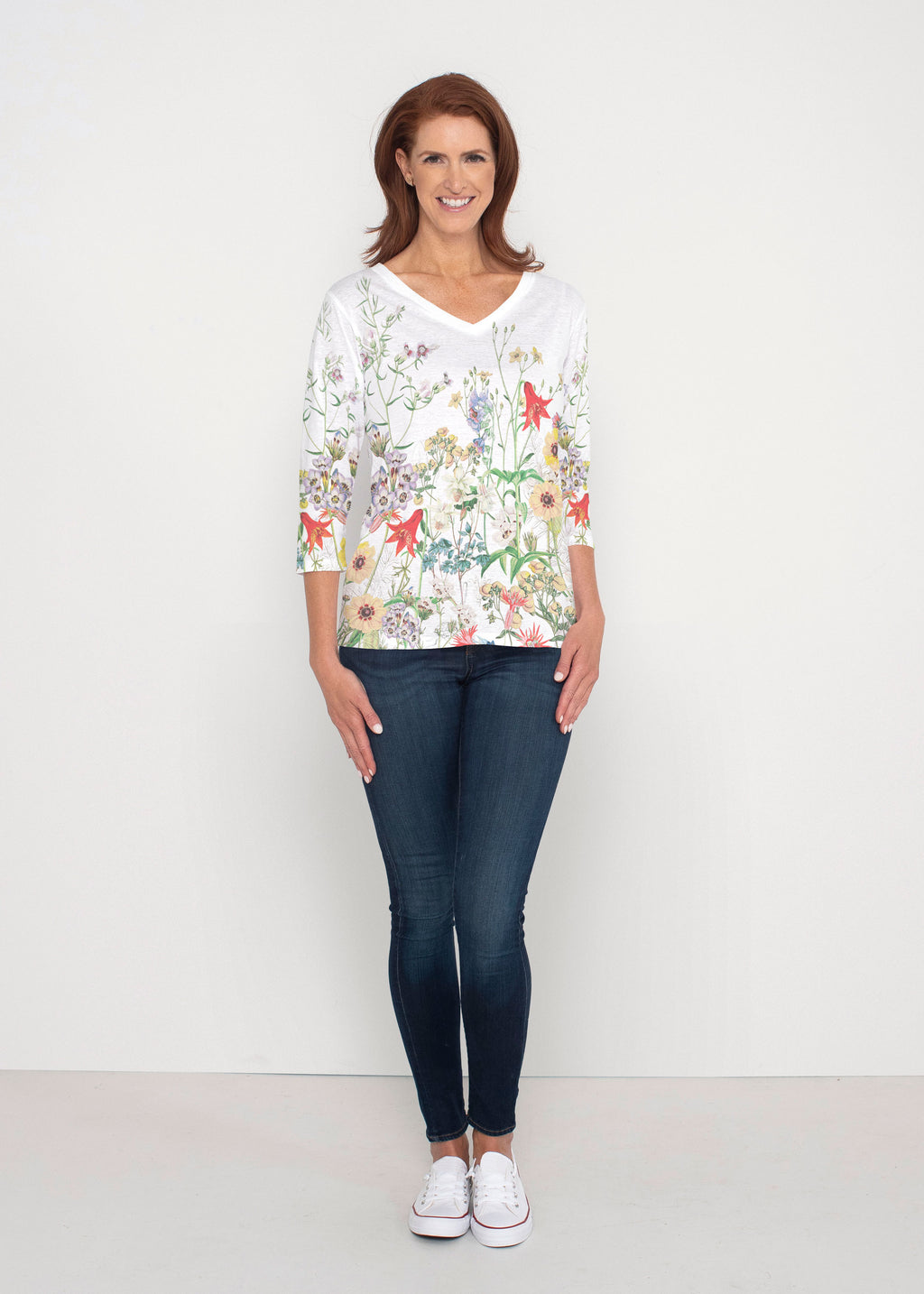 Our casual Signature 3/4 sleeve has a subtle v-neck and is perfectly proportioned and a new best-selling favorite. This relaxed fit is not only flattering but you get to pick that special print for any mood.