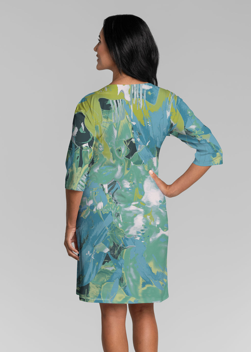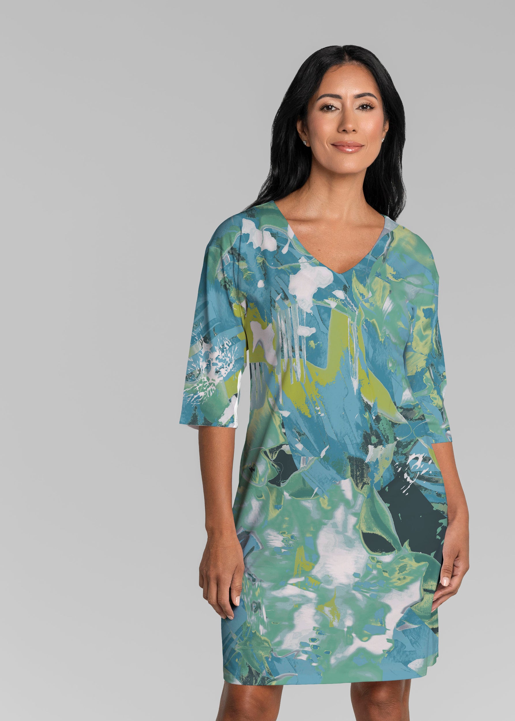 Rain forest Splash (26005) ~ Lucy 3/4 Sleeve V-Neck Dress