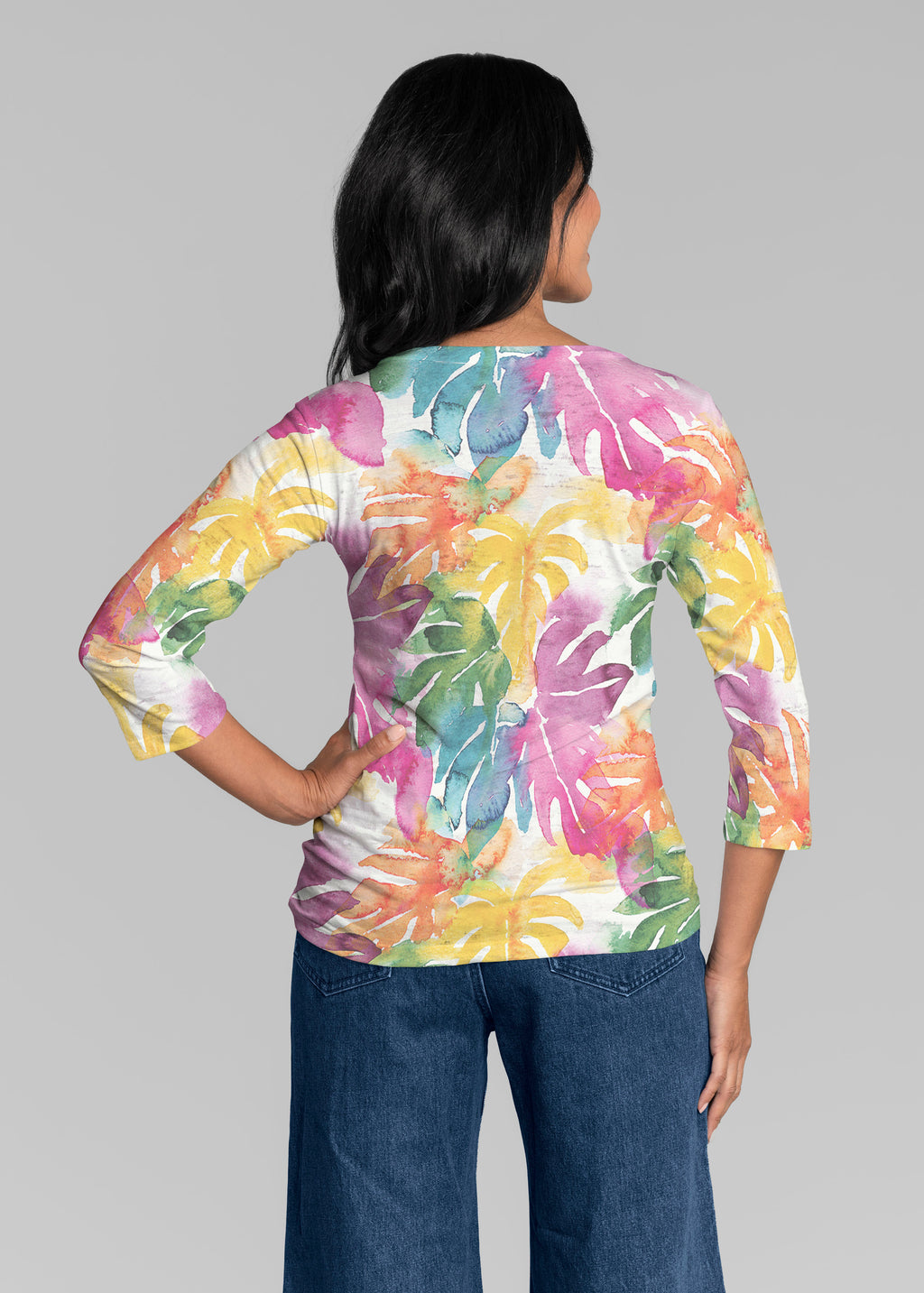 Our casual Signature 3/4 sleeve has a subtle v-neck and is perfectly proportioned and a new best-selling favorite. This relaxed fit is not only flattering but you get to pick that special print for any mood.