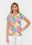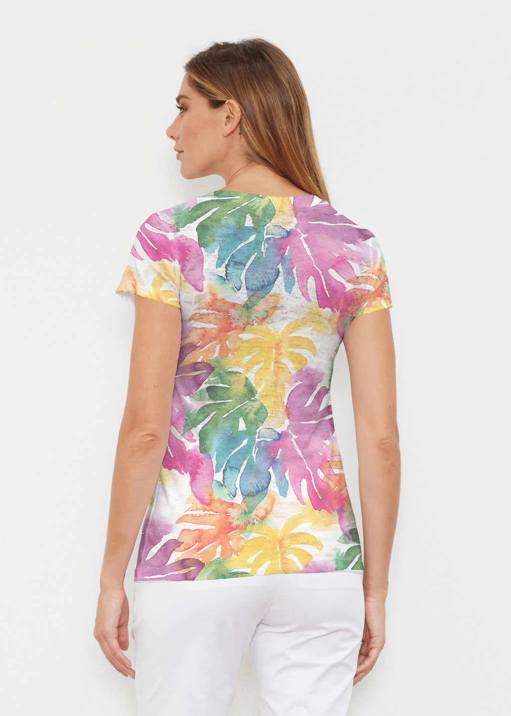 Created in soft, casual burn-out Signature blend, this tee features a subtle v-neck and cap sleeves. -- Your one-of-a-kind garment is created using all-over soft garment sublimation printing. Selected designs are individually printed into your garment. Cotton/Polyester blend.