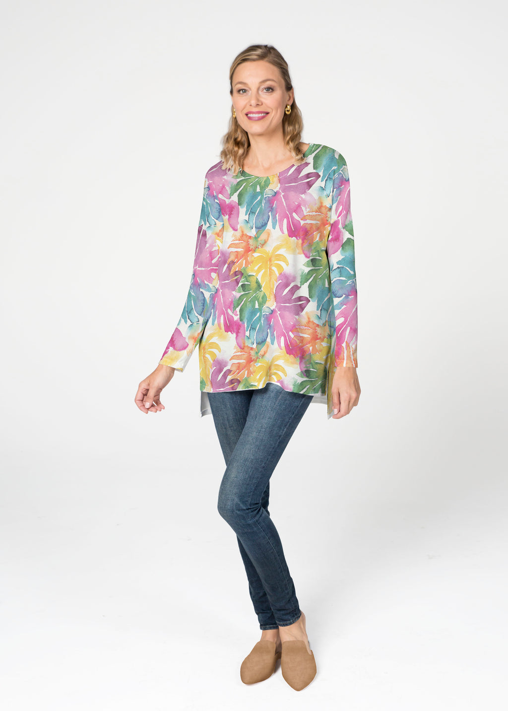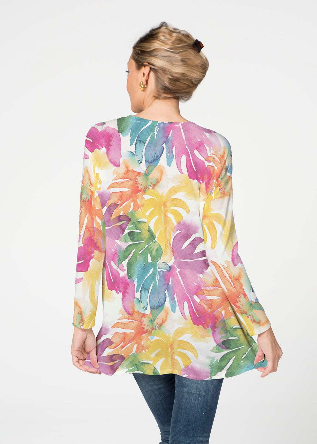 Rainbow Monstera (26040) ~ V-neck Flowy Tunic