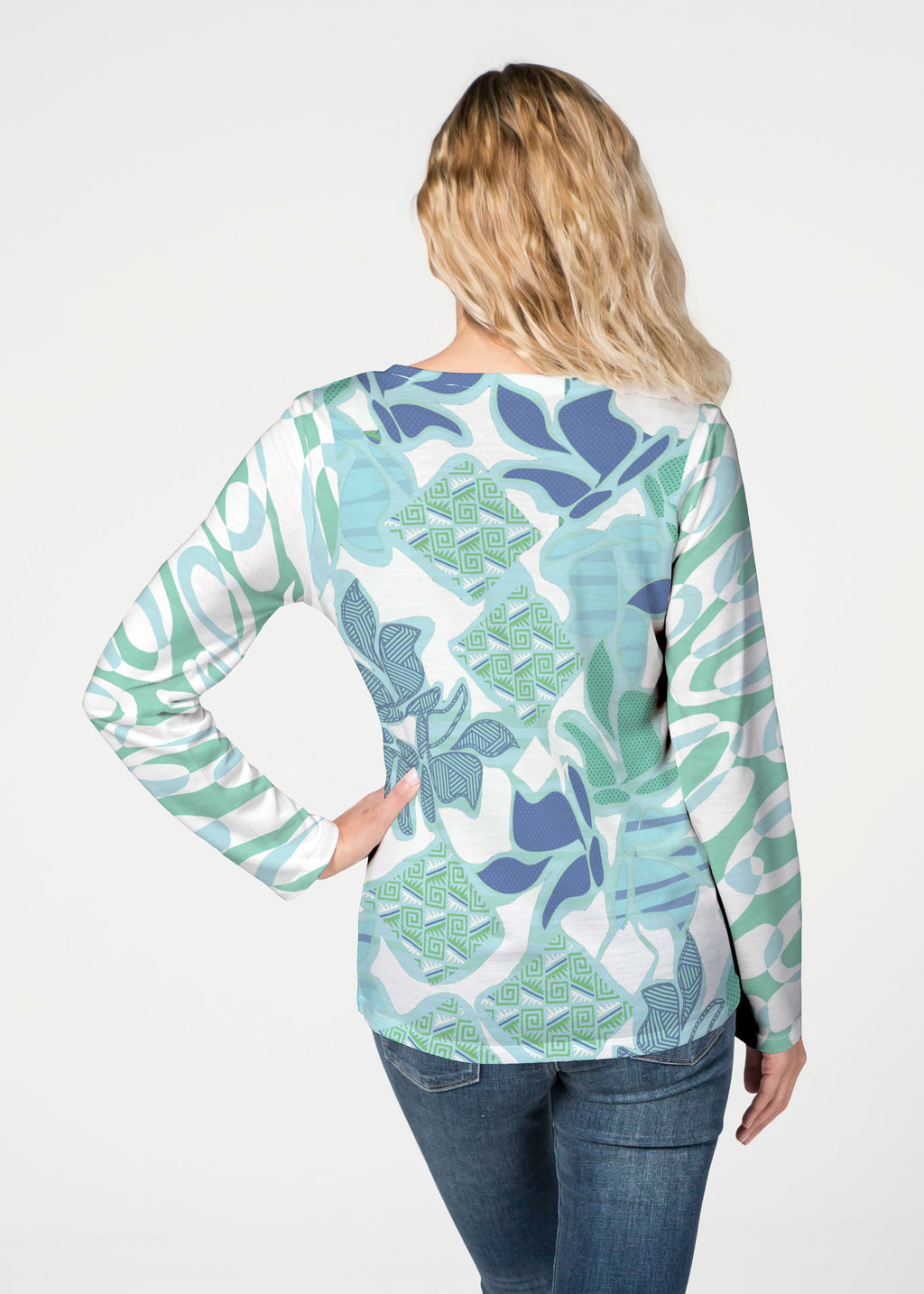 Our French Terry top is comfort and style all in one! Our French Terry top that features long sleeves, a V-neck and a more fitted silhouette that looks stylish in any print.
