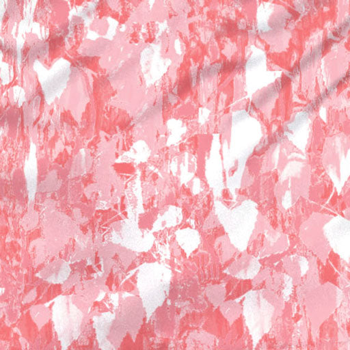 A beautiful graphic floral print with faded leaf textures in shades of coral and white designed by Susan Werner.