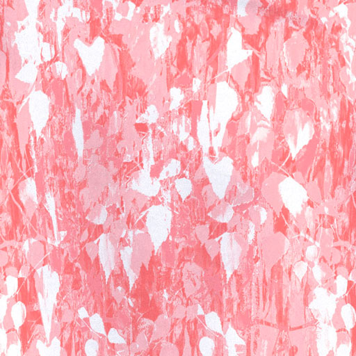 A beautiful graphic floral print with faded leaf textures in shades of coral and white designed by Susan Werner.