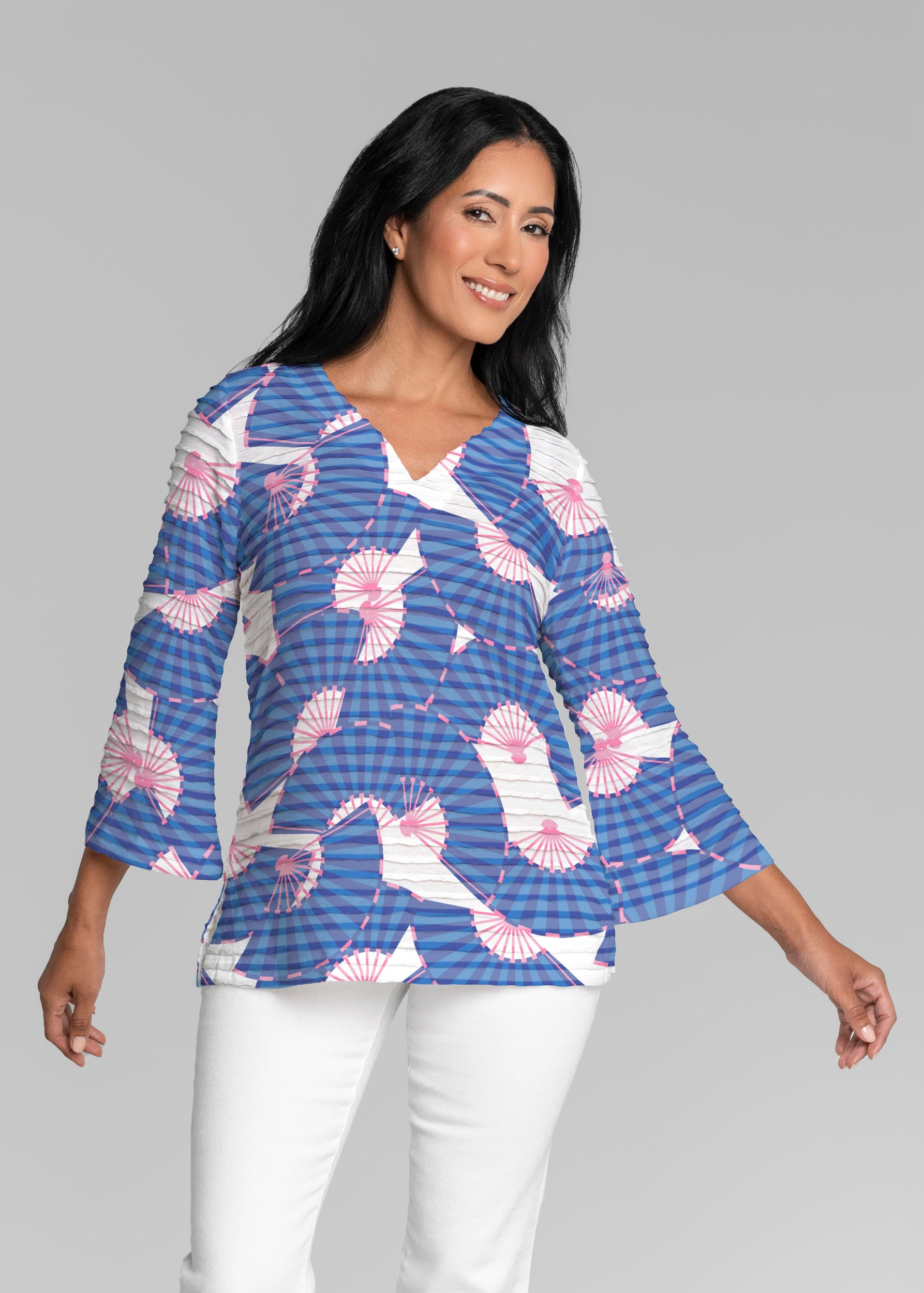 Surfin Safari (26034) ~ Banded 3/4 Bell-Sleeve V-Neck Tunic