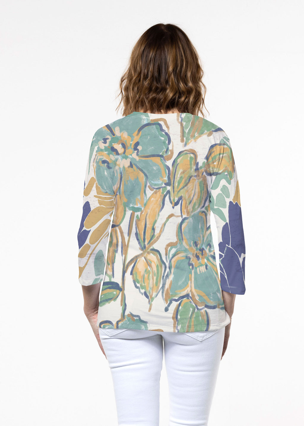 Aspen Aqua (19186) ~ Signature 3/4 Sleeve Crew Neck Top