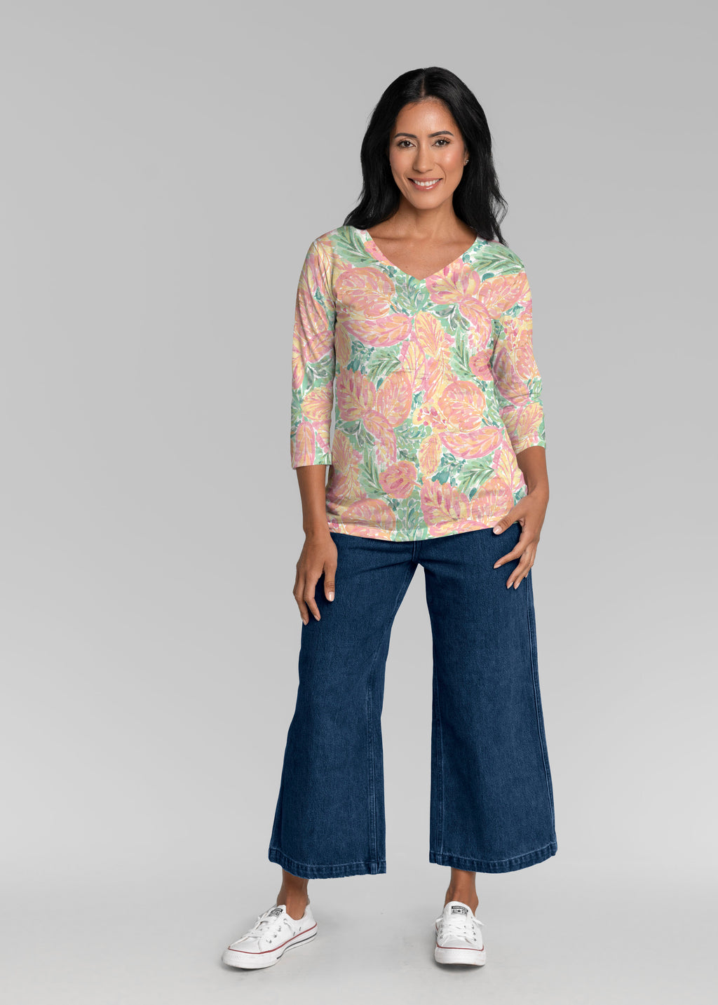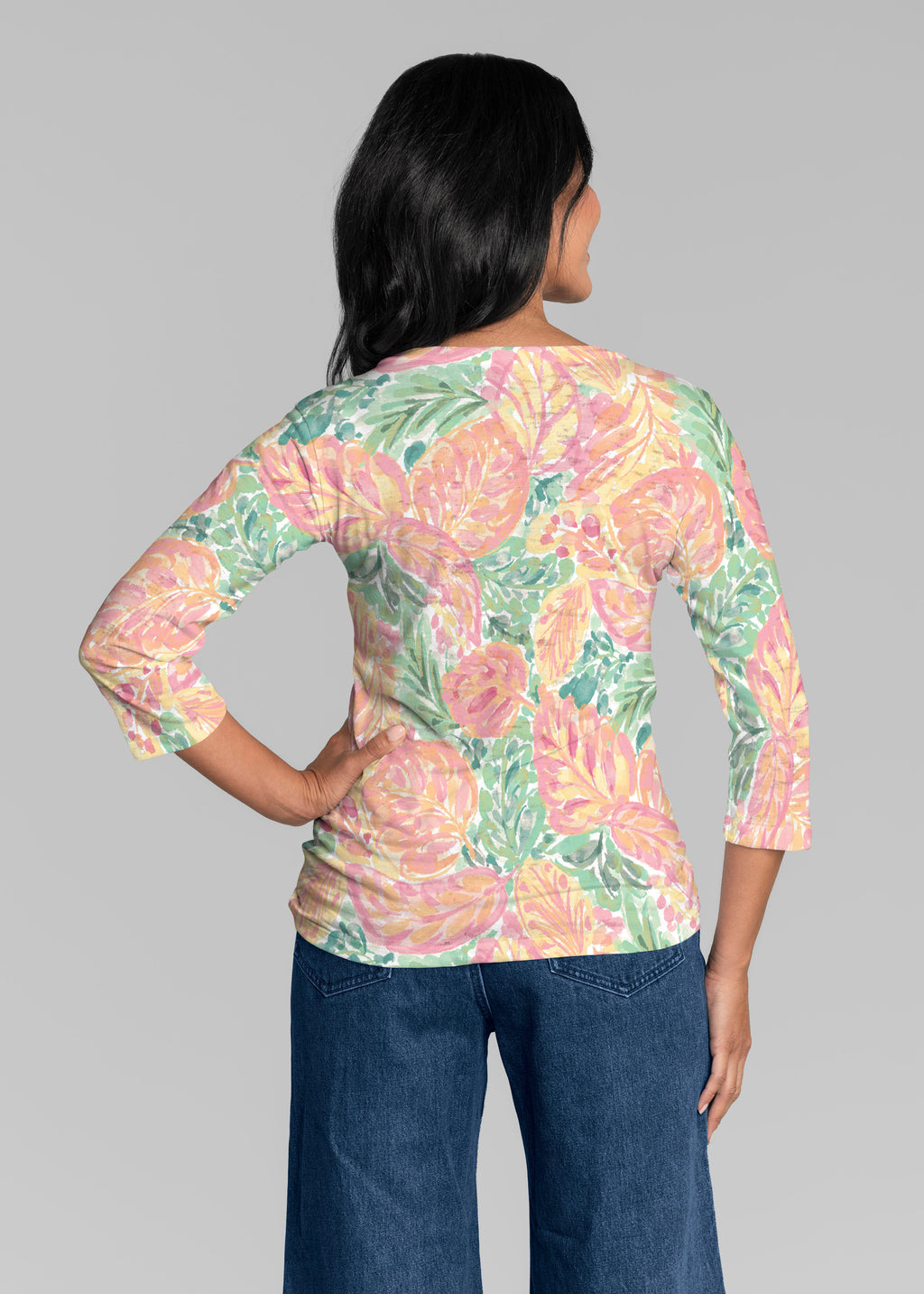 Our casual Signature 3/4 sleeve has a subtle v-neck and is perfectly proportioned and a new best-selling favorite. This relaxed fit is not only flattering but you get to pick that special print for any mood.
