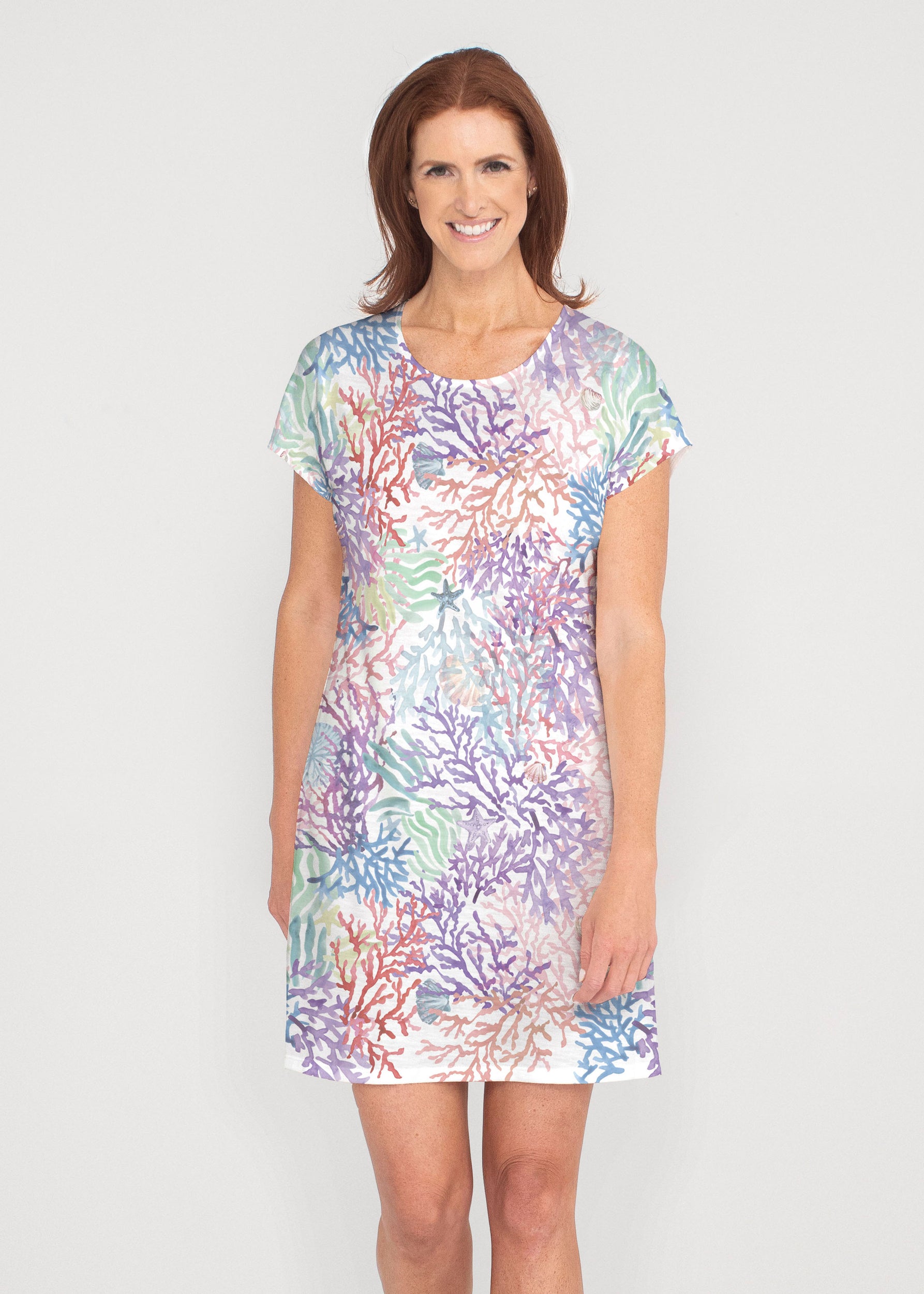 • Tropic Coral (8112) ~ French Terry Short Sleeve Crew Dress